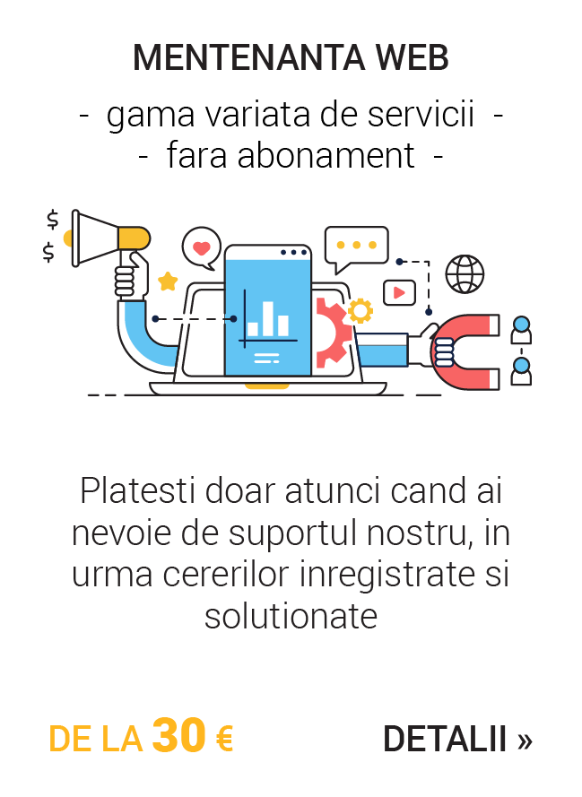 Design specialLasa o impresie placuta utilizatorilor printr-un design personalizat care reflecta stilul unic al companiei si brandului tau. Vei transmite astfel o imagine consistenta potentialilor clienti, captandu-le acestora increderea. |